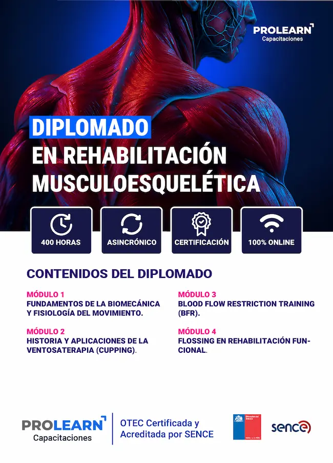 Descripción: El Diplomado en Rehabilitación Musculoesquelética entrega formación especializada en la recuperación y prevención de lesiones, con modalidad 100% online y asincrónica, flexible y aplicable al ámbito profesional. Está dirigido a estudiantes y profesionales de la salud y el deporte, con certificación acreditada y validez para carrera funcionaria, concursos públicos y procesos ante CONISS.