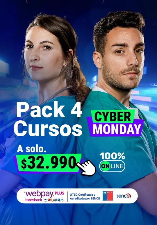 Descripción: Aprovecha la oferta Cyber de ProLearn Capacitaciones con nuestro Pack de 4 Cursos Online a elección, con certificación acreditada y reconocimiento SENCE. Estudia 100% online y a tu ritmo, con hasta 360 días de acceso. Ideal para Enfermería, TENS, Kinesiología, Medicina y otras áreas de la salud, orientado a estudiantes, técnicos y profesionales que buscan actualizar sus conocimientos. Todos los programas incluyen certificación automática al aprobar y cuentan con el respaldo de una OTEC certificada bajo la norma NCH 2728:2015.